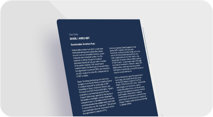 T H E 1 2 T H U Case Study N I T E SASOL | AMEX GBT D N A T I O N S G Sustainable Aviation Fuel L O B A L C Sustainable aviation fuel (SAF), made from American Express Global Business Travel O M P renewable energy and sustainable carbon (Amex GBT), together with Shell and A C T - sources such as renewable biomass, waste Accenture, recently launched Avelia, one of the A C C resources and industrial carbon, has the world’s first blockchain-powered book-and- E N T potential to deliver the performance of claim digital platforms for SAF. Avelia is the U R petroleum-based jet fuel, but with a fraction largest pilot at launch with one million gallons E C E of its carbon footprint. SAF could have a of SAF to start – a meaningful step in the right O S T U massive impact on the future of transportation, direction for the industry. However, nearly 100 D but significant investment, R&D, and innovation billion gallons of jet fuel were consumed in Y are still required to make the widespread use 2019 (prior to pandemic), proving that progress of SAF a reality. requires acceleration by all. Sasol, the integrated energy and chemicals CEOs in the industry agree that government company from South Africa, is investing further must step up to create the infrastructure in catalyst research for production of SAF. for the SAF industry to take off. As Paul According to Sasol’s Executive Director and Abbott, CEO of Amex GBT, notes: “Sustainable President and CEO, Fleetwood Grobler, “Sasol’s technologies and innovations, such as proprietary, commercially proven Fischer sustainable aviation fuels, are the only way Tropsch technology, agnostic to the source of we can make significant progress. And that the carbon or hydrogen, and our expertise in won’t happen unless there is massive catalysts makes us the ideal partner to help the investment in infrastructure, primarily from world decarbonise the aviation sector and make governments, to drive long-term structural it sustainable over the long-term”. This process change.” Indeed, public-private-partnership may eventually allow for sourcing of carbon is mission critical. through direct air capture of CO . 2 84 85