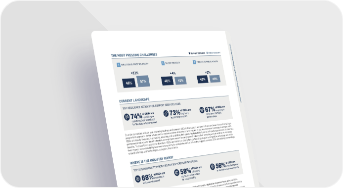 T H E 1 2 T H U THE MOST PRESSING CHALLENGES SUPPORT SERVICES CROSS INDUSTRY N I T E D N A 1 INFLATION & PRICE VOLATILITY 2 TALENT SCARCITY 3 THREATS TO PUBLIC HEALTH T I O N S G L 11% O B 4% A 2% L C O 57% M 46% 46% P 42% 42% 40% A C T - A C C E N T U R As industries across the world CURRENT LANDSCAPE E C E struggle with the results of the O S T pandemic, economic volatility, TOP RESILIENCE ACTIONS FOR SUPPORT SERVICES CEOS U D Y and geopolitical tensions, support SE of CEOs are of CEOs are of CEOs are services CEOs are focusing on upskilling or digitizing engaging in 74% 73% 67% building resilient workforces reskilling their workforce business processes long-term strategic and leveraging the power of ORTfor the future labor market partnerships technology to meet the ever- changing needs of their clients.In order to contend with an ever-changing business environment, CEOs in the support services industry are laser-focused on taking a people-first approach. As the private sector evolves and the skills that clients require to address their most pressing challenges shift, CEOs are heavily investing in attracting, retaining, and upskilling their talent. Sustainability is rising in importance, not only for business P performance but also for talent retention, as employees search for purpose and value in their everyday work in addition to monetary R benefits. To brace for an economic downturn, CEOs are looking to strengthen partnerships to gain a competitive advantage and scale their impact. As sustainability becomes a top priority for companies across industries, support services CEOs are utilizing partnerships P to build offerings and technologies to support their clients. V WHERE IS THE INDUSTRY GOING? TOP SUSTAINABILITY PRIORITIES FOR SUPPORT SERVICES CEOS “Education is key to building a U of CEOs are of CEOs are of CEOs are I investing in advancing introducing new resilient business. Leaders need 68% 58% 56% more training as the business skills development digital transformation sustainable business models environment has become CE for sustainability more complex, especially with S globalization and geopolitics.”As COVID-19 changed the way the support services industry interacted with clients, digitization became a focus point for CEOs. Technologies, such as artificial intelligence, machine learning, and predictive intelligence allow for increased efficiency and accuracy Grace Kwok May Han, Chairman and through the automation of repeatable tasks. Emerging technologies, such as virtual reality and the metaverse, provide nascent Executive Director of Allied Sustainability opportunities for reshaping client interactions. In addition, as the world transitions towards a more sustainable future, support services and Environmental Consultants companies are key partners for both the private and public sector to accelerate their goals. As Susan Chodakewitz, President and Group Limited CEO of Nathan Associates, notes, “Governments and society at large don’t have the resources to invest in the capital projects and fundamental shifts that are necessary to meet climate change challenges right now. And this is where public-private partnerships are going to be crucial – getting like-minded organizations, regardless of business models, to collaborate on certain key objectives such S as infrastructure.” TRANSFORMATIVE INNOVATIONS Cloud computing 48% Artificial intelligence and predictive analytics for risk planning 40% Virtual reality enabled collaboration spaces 30% HIGH IMPACT MODERATE IMPACT LOW IMPACT NO IMPACT 116 117