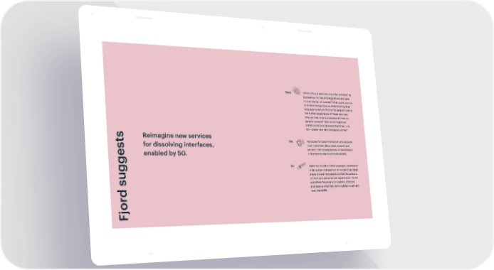T3 Walking barcodes T3 Walking barcodes Think Which of your services could be unlocked by biometrics, (in line with regulations and laws in your sector, of course)? What could you do with facial recognition or understanding body language to reduce friction for people? Look at the human experience of these services: Who do they most convenience? How do people consent? How could improved communications between machines – via s 5G – create new service opportunities? Reimagine new services Say Advocate for data minimalism and educate st for dissolving interfaces, your customers about data consent and privacy – the consequences of data breach enabled by 5G. in biometrics are much more severe. Do Make the invisible visible so people understand when a scan, transaction or consent has taken place. Ensure that people can be the curators of their own personalized experiences – build a platform for people to express, discover, and receive what they want – subject to privacy d sugge laws like GDPR. jor F 47 48