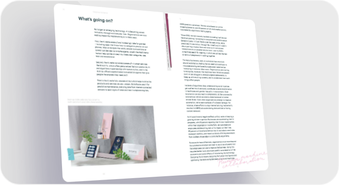T5 Designing intelligence T5 Designing intelligence What’s going on? ASOS predicts customers’ lifetime value based on online shopping behavior, and 80 percent of US stock market activity is powered by algorithmic trading agents. No longer an emerging technology, AI is becoming woven “Since 2013, the tech industry has been re-making itself around intricately through our everyday lives. Organizations are now Machine Learning,” according to consultant and mobile analyst making impact by implementing AI in three ways: Benedict Evans. In Fjord Trends over the years since, we’ve predicted AI’s evolution: through Me, myself and AI in 2017 – First, the AI we’re aware of and increasingly take for granted about putting a human face and voice on AI and related – including apps that know how to categorize photos on our interactions at a customer service level – and in 2018’s phones, help us navigate the world, answer our questions or A machine’s search for meaning, in which we outlined the new control our devices via in-home agents. Usually the machine-to- dynamic of people and AI working together. human help can be divided into three clear categories: see, hear and recommend. For many businesses, early AI successes have revolved around automation, making the two seem synonymous – a Second, the AI we’re not always aware of – in smart services misunderstanding reinforced by a persistent narrative that like Stitch Fix, which offers personalized fashion curation by AI increasing AI reduces labor costs. Organizations are starting and algorithms in partnership with human stylists, and in the to recognize, however, that machines have limitations people Irish tax office’s sophisticated conversation agents that give don’t: AI can struggle to untangle unpredictable events, to people the answers they need 24/7. keep up with evolving systems, and to understand how such things affect people. Third is the AI we’re fully unaware of, but which helps to drive the products and services we use – unseen. Rolls-Royce uses it for Incidents of algorithmic bias, (where existing social injustices predictive maintenance, analyzing data from internet-connected get codified into AI advisors), contributes to racial discrimination sensors to spot signs of wear and tear in airplane engines, in healthcare and gender inequality in recruitment. Over- automation can also lead to complacency, as demonstrated by autonomous vehicle accidents where handover to human Start-up Atolla calibrates face serum to drivers failed. Even when organizations attempt to improve each customer’s exact skin characteristics. automation, we’ve seen examples of collateral damage – for instance, where efforts to stop internet bullying inadvertently resulted in LGBTQ advocates being demonetized or having content removed. As AI’s positive and negative effects unfold, we’re witnessing a growing divide in opinion. Businesses are accelerating their AI programs, with 80 percent reporting that it’s now in production within their organization in some form, yet customers and employees are becoming wary of its impact on their lives. 82 percent of Americans believe that AI and robots need to be managed carefully, and there’s evidence of rising resentment from workers whose labor is controlled by algorithms. To reconcile these differences, organizations must move beyond the automation mindset and start to see AI as a dynamic tool that employees can use to improve the business. Doing this requires better tools and more careful consideration of the economic and social effects of introducing the technology. Designing for AI means designing for human intelligence and optimizing the relationship between people and machines. 65 66