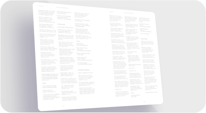 Trends 2020 Realigning the fundamentals Trends 2020 Realigning the fundamentals Bernard Marr, Forbes, “The amazing Woman using Meitu’s makeup+. Julia LaRoche, Yahoo, “Starbucks Silvia Amaro, CNBC, “Sell-offs Gregg Schoenberg, TechCrunch, Train station employee, Tokyo ways Babylon health is using AIU Credit: Meitu (video) to offer mental health service could be down to machines that “Tally’s Jason Brown on fintech’s Station, Chiyoda-ku, Japan. to make healthcare universally as new employee benefit”, control 80% of the US stock first debt roboadvisor and an Credit: Victoriano Izquierdo/ accessible”, August 6, 2019 Portrait of woman with digital September 5, 2019 market, fund manager says”, automated financial future”, Unsplash typography across face. December 5, 2018 June19, 2019 Salvador Rodriguez, CNBC, Credit: Donny Jiang/Unsplash United Nations, “World Population AlphaStar and StarCraft II “Facebook agrees to acquire Prospects 2019” Ben Evans, Benedict Evans, Gayang Ho, Global Railway Review, gameplay. brain-computing start-up “Machine learning deployment”, “Artificial Intelligence in rail: hype Credit: DeepMind and Blizzard CRTL-labs”, September 23, 2019 European Commission, “2018 October 4, 2019 or reality?”, May 15, 2019 Liquid people Ageing Report: Policy challenges Woman with hologram Intel, “How 5G will transform for ageing societies” Wired, “A health care algorithm Charlotte Jee, MIT Technology data on wrist. the business of media and Everlane, Black Friday Fund, 2019 offered less care to black Review, “DeepMind has Credit: Justin Peralta/Unsplash entertainment”, October 2018 United States Census Bureau, patients”, October 24, 2019 made a prototype product that Beth Desmond, New Statesman, “Older people projected to can diagnose eye diseases”, A.I. chair. Credit: Kartell 5G World Pro, “SK Telecom to open “How gender fluidity went outnumber children for the first Jeffrey Dastin, Reuters, “Amazon April 1, 2019 5G hospital in 2020”, May 6, 2019 mainstream”, June 12, 2019 time in US history”, March 13, 2018 scraps secret AI recruiting tool that showed bias against women”, Alex Hickey, CIO Dive, “AI sits in Wired, “How 5G will supercharge Eliana Dockterman, Time, “A doll Kerry Hannon, The New York October 10, 2018 on Salesforce’s board meetings Digital doubles business to work in real time”, for everyone: meet Mattel’s new Times, “My work life is over. What’s and has something to say”, August 8, 2019 gender-neutral doll”, September next?”, September 12, 2019 Ron Schmelzer, Forbes, “What January 26, 2018 Brian Buntz, IoTWorldToday, “Of 25, 2019 happens when self-driving cars custom shoes and bottles: digital Sidney Fussell, The Atlantic, Images kill people?”, September 26, 2019 Barry Libert, Megan Beck, and twin technology grows up”, May 1, “YouTube videos are a gold Peter Johnson, The HR Director, Mark Bonchek, MIT Sloan 2018 mine for health researchers”, “Rise of the freelancer – self- Impossible bao. Aja Romano, Vox, “A group of Management Review, “AI in the September 9, 2019 employed spikes as people seek Credit: Impossible Foods YouTubers is trying to prove the boardroom: the next realm of Paul Sawers, VentureBeat, flex”, June 11, 2019 site systematically demonetizes corporate governance”, October “Tencent leads $10 million Pyments.com, “Alipay to add Snowy view from inside queer content”, October 10, 2019 19, 2017 investments in SenSat to create beauty filters to facial recognition Katharine Schwab, Fast Company, train carriage. real-time simulated realities”, kiosks in China”, July 3, 2019 “These plant-based food Credit: Mike Petrucci/Unsplash Louis Columbus, Forbes, “80% Finch 3D, Design tool for October 1, 2019 companies are re-branding to of enterprises are investing in AI architechts Seth Miller, Paxex.aero, target meat eaters – and it’s Mattel Creatable World dolls. today”, October 16, 2017 CIO&Leader, “Digital twin revenues “Biometrics expand in Asia, working”, July 25, 2019 Credit: Mattel Sebastian Jordahn, Dezeen, to rise by 2023, boosted by AI Europe and the Middle East”, Governanceai, “Artificial “Philippe Starck, Kartell and and ML innovation”, April 12, 2019 October 9, 2019 Adele Peters, Fast Company, Plastic waste, MAAS, intelligence: American attitudes Autodesk unveil ‘world’s first “Think fake burgers are just for Lisbon, Portugal. and trends”, January, 2019 production chair designed with Grand View Research, “Digital Leon Kelion, bbc.co.uk, “Gatwick vegetarians? 95% of Impossible Credit: Martijn Baudoin/Unsplash artificial intelligence’”, April 11, twin market size worth $26.07 airports commit to facial Foods customers are meat eater” Mareike Möhlmann and Ola 2019 billion by 2025”, December 2018 recognition tech at boarding”, September 18, 2019 Old woman laughing. Henfridsson, Harvard Business September 17, 2019 Credit: Huyen Nguyen/Unsplash Review, “What people hate about MakerInsights, Product decision Druhti Shah, Kerry Allen, BBC, Robert Booth, The Guardian, being managed by algorithms, engine for retail “Chinese vlogger who used filter Jenni Reid, Business Traveller, “Vegan food becomes UK’s according to a study of Uber to look younger caught in “Facial recognition kiosk gives fastest-growing take-away”, drivers”, August 30, 2019 Klydo.ai, 2019 live-stream glitch”, July 30, 2019 flight updates at Chinese August 28, 2019 Designing intelligence airports”, March 27, 2019 John Pavlus, Quanta Magazine, Nuritas.com, 2019 Ephrat Livni, qz.com, “Voice Richard Moller, YouGov, “Is Stitch Fix, Algorithms tour, 2019 “His Artificial Intelligence sees skins will make the internet a Madeleine Hillyer, World Economic inside living cells”, July 24, 2019 Dezeen, flexitarianism the diet of the Rima Sabina Aouf, freer – but more dangerous – Forum, “World Economic Forum future