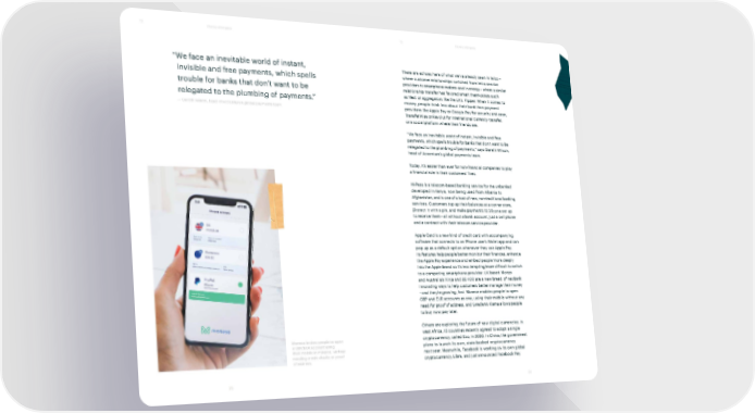 T2 Money changers T2 Money changers “We face an inevitable world of instant, There are echoes here of what we’ve already seen in telco – invisible and free payments, which spells where customer relationships switched from telco service providers to smartphone-makers–and in energy – where a similar trouble for banks that don’t want to be relationship transfer has favored smart thermostats such as Nest or aggregators like the UK’s Flipper. When it comes to relegated to the plumbing of payments.” money, people think less about their bank than payment — Gareth Wilson, head of Accenture’s global payments team providers like Apple Pay or Google Pay for security and ease, TransferWise or Revolut for international currency transfer, or a social platform where their friends are. “We face an inevitable world of instant, invisible and free payments, which spells trouble for banks that don’t want to be relegated to the plumbing of payments,” says Gareth Wilson, head of Accenture’s global payments team. Today, it’s easier than ever for non-financial companies to play a financial role in their customers’ lives. M-Pesa is a telecom-based banking service for the unbanked developed in Kenya, now being used from Albania to Afghanistan, and is one of a host of new, non-traditional banking services. Customers top up their balances at a corner store, protect it with a pin, and make payments to anyone set up to receive them – all without a bank account, just a cell phone and a contract with their telecom service provider. Apple Card is a new kind of credit card with accompanying software that connects to an iPhone user’s Wallet app and can pop up as a default option whenever they use Apple Pay. Its features help people better monitor their finances, enhance the Apple Pay experience and embed people more deeply into the Apple brand so it’s less tempting/more difficult to switch to a competing smartphone provider. UK-based Monzo and Australia’s Xinja and 86400 are a new breed of neobank innovating ways to help customers better manage their money – and they’re growing, fast. Monese enables people to open GBP and EUR accounts as one, using their mobile without any need for proof of address, and Sweden’s Klarna allows people to buy now, pay later. Others are exploring the future of new digital currencies. In west Africa, 15 countries recently agreed to adopt a single Monese invites people to open cryptocurrency, called Eco, in 2020. In China, the government a GBP/EUR account using plans to launch its own, state-backed cryptocurrency their mobile in minutes, without next year. Meanwhile, Facebook is working on its own global needing credit checks or proof of address. cryptocurrency, Libra, and just announced Facebook Pay. 25 26