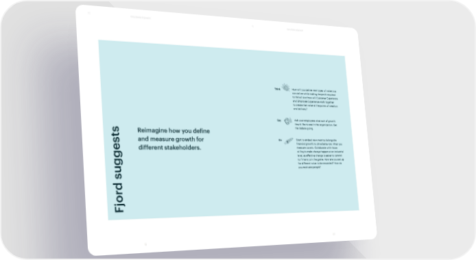 T1 Many faces of growth T1 Many faces of growth Think How will you define new types of value you can deliver while making the profit required to thrive? And how will Customer Experience and Employee Experience work together to create that value at the points of creation and delivery? Say Ask your employees what sort of growth they’d like to see in the organization. Get s Reimagine how you define the debate going. st and measure growth for Do Start to embed new metrics (alongside financial growth) to drive behaviors. What you different stakeholders. measure counts. Collaborate with those willing to make change happen at an industrial level, as effective change is easier to commit to if many join the game. How are you set up for different value to be rewarded? How do you motivate people? d sugge jor F 19 20