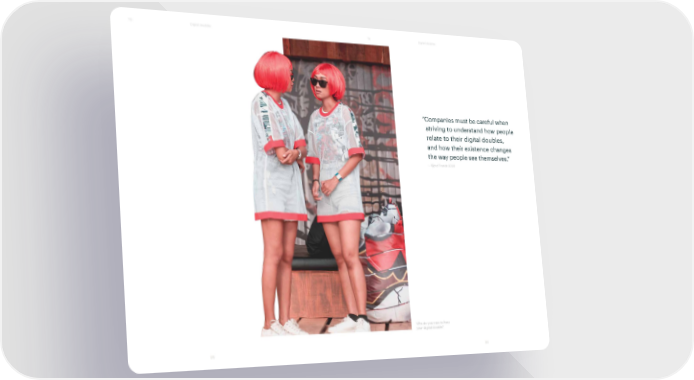 T6 Digital doubles T6 Digital doubles “Companies must be careful when striving to understand how people relate to their digital doubles, and how their existence changes the way people see themselves.” — Fjord Trends 2020 Who do you trust to host your digital double? 85 86