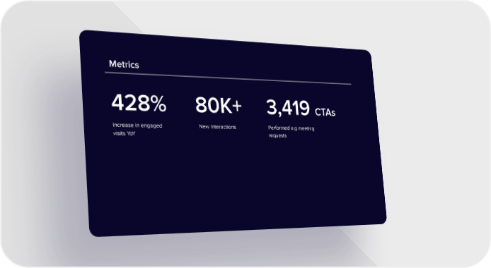 Metrics 428% 80K+ 3,419 CTAs Increase in engaged New Interactions Performed e.g meeting visits YoY requests