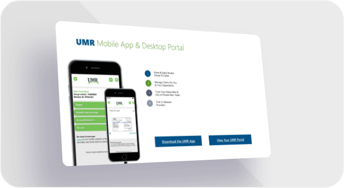 UMR Mobile App & Desktop Portal 1 Store & Easily Access Virtual ID Cards 2 Manage Claims for You & Your Dependents 3 Track Your Deductible & Out-of-Pocket Max Totals 4 Find In-Network Providers Download the UMR App View Your UMR Portal