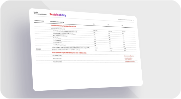 Key ESG Performance Indicators 27 2021 Adobe Corporate Social Responsibility Report Sustainability REFERENCE INDICES KEY PERFORMANCE INDICATOR 2019 2020 2021 Sustainable workplaces and practices Total Space Worldwide (Sq. Ft.) 4,685,530 4,622,486 4,648,814 % LEED/ Green-Certified Buildings [owned and leased] 75% 77% 81% % Employees in LEED/ Green-Certified Workspaces 61% 68% 66% % of Total Owned and Managed 54% 54% 53% % of Total Leased 46% 46% 47% % of Total in U.S. 62% 62% 63% % of Total in India 21% 21% 21% % of Total in Rest of World 17% 15% 16% Adobe Workspace Total Energy Use (Does Not Include Managed COLO Energy) [MWh] 134,367 100,995 78,661 GRI 302-3 Energy Use Intensity of Adobe Workspaces (kWh/Square Foot) 28.68 21.85 16.92 Environmentally sustainable products and services Sustainability policy Adobe Sustainability Policy Product innovation Adobe Sustainability - Product Innovation Product innovation Sustainability - Adobe Blog
