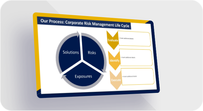 Agency Services Overview Template Page 4 Page 6Our Process: Corporate Risk Management Life Cycle Evaluate •Insert additional details Solutions Risks • Insert additional details Identify Exposures • Insert additional details Execute