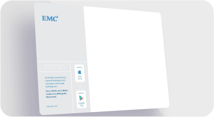 EDITORS Available on David Quinn, Senior Director, App Store Corporate Marketing at EMC Corporation, and his Agile Marketing team: & Steve Colombo, Amy Callahan, Carolyn Cerce, Jill Fitzgerald, Available on Ellen Deutsch Google www.emc.com Play