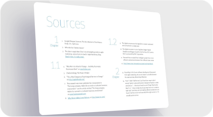 Sources 1 1. Google/Shopper Sciences, The Zero Moment of Truth Macro 1. 9. The digital universe are the digital bits created, replicated 2 Study, U.S., April 2011 and consumed in a single year. Chapter 2. Who else but Charles Darwin? 10. The digital universe in 2020: Big Data, Bigger Digital 3. The idea to apply Nate Silver’s fox & hedgehog simile to agile Shadows and Biggest Growth in the Far East, IDC Country marketing, comes from Jim Ewell’s ‘Agile Marketing’ blog. Brief, sponsored by EMC Corporation. Read it here, it’s really smart. 11. Research has revealed that intelligent people have more efficient connections between their different brain areas. 12. http://www.cross-innovation.eu/practices/manifesto/ 1.1 4. “Why We’re So Afraid of Change -- And Why That Holds Businesses Back” on www.forbes.com 5. Charles Duhigg, The Power Of Habit 2 13. According to the Scrum software development framework from agile marketing, the scrum master is a buffer between 6. “The 3 Most Dangerous Psychological Barriers to Change” Chapter the team and any distracting influences on http://agilelifestyle.net/ 14. From “I didn’t fail the test, I just found 100 ways to do it 7. This research was never published but incorporated in wrong” (which is also attributed to Benjamin Franklin in other “The living company: Habits for survival in a turbulent business versions) to “ …I Have Just Found 10,000 Things That Do Not environment”: see the article entitled “The living company: Work” or “…I have simply found 999 ways how not to create a Habits for survival in a turbulent business environment” light bulb” and there are still slightly different variations to be on www.businessweek.com found. Feel free to let me know which the right version is. I’m 8. Why Silicon Valley Loves Failures, on http://www.inc.com/ actually quite curious.
