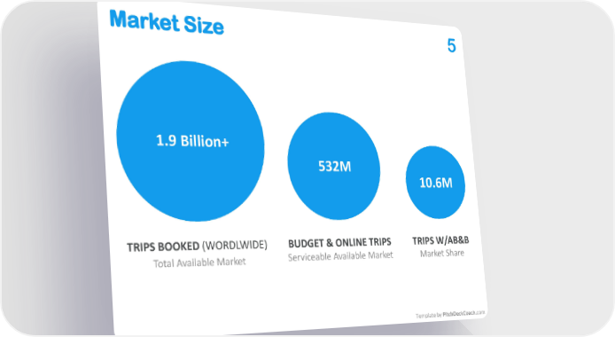 Market Size 5 1.9 Billion+ 532M 10.6M TRIPS BOOKED(WORDLWIDE) BUDGET & ONLINE TRIPS TRIPS W/AB&B Total Available Market Serviceable Available Market Market Share Template by PitchDeckCoach.com AirBnB Page 6 Page 8