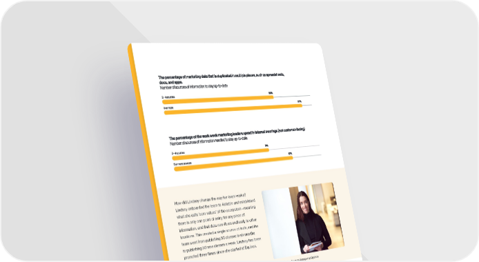 The percentage of marketing data that is duplicated in multiple places, such as spreadsheets, docs, and apps. Number of sources of information to stay up-to-date 2 - 4 sources 29% 5 or more 37% The percentage of the work week marketing leaders spend in internal meetings (not customer-facing) Number of sources of information needed to stay up-to-date 9% 2 - 4 sources 5 or more sources 12% How did Lindsey change the way her team works? Lindsey onboarded the team to Airtable and established what she calls ‘core values’ of the ecosystem—meaning there is only one point of entry for any piece of information, and that data now flows endlessly to other locations. This created a single source of truth, and the team went from publishing 50 classes in six months to publishing 50 new classes a week. Lindsey has been promoted three times since she started at Equinox. Lindsey Puccio, Product Manager at Equinox Take action: Take Lindsey’s lead and consolidate sources wherever you can. Refreshingly, you don’t need to pull everything into one place overnight; you can take a more iterative approach. This report shows that even consolidating to fewer than five sources will reduce data duplication, stress, and time in redundant meetings by at least a quarter. 11 Airtable 2022 Marketing trends report