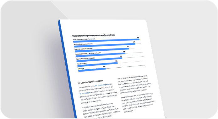 Thdsbd df lsoefrd s ns deolsdexdfsd ds foos ls ns os oods oools Greater ability to adapt to changing business needs 59% Ability to customize tools to suit your needs 54% Easier cross-departmental collaboration 47% Increased problem-solving at the individual contributor level 43% Faster ship time for content and campaigns 39% Reduced reliance on IT 34% Cost savings 23% No code is a trend for a reason With marketers battling increasing workloads and an This year’s report found 8 in 10 marketing teams are ever expanding scope of responsibilities, teams need using no and low code marketing tools currently, and flexible solutions—ones that allow them to build and 80% of leaders expect their teams’ use of no code to evolve workflows to keep up with shifting demands. More increase over the next 12 months. As a comparison point, specifically, teams need to be able to dictate how they last year’s report found 33% of marketers were using no work with technology, not the other way around. code tools on a regular basis. But marketing teams using no code report benefits even “I don’t think it’s coincidental that marketers are beyond adaptability and customization. This research embracing no code right now,” Scott Brinker told found a strong correlation between marketing leaders Airtable. “These technologies allow you to adapt much using no code and those who reported less manual work, more quickly to changes in the environment… and those more efficient workflows, and the ability to make data changes do not seem to be slowing down.” driven decisions. The percentage of marketing work that is done manually Do not use no code/low code tools 45% Use no code/low code tools 36% Total 3 % 21 Airtable 2022 Marketing trends report