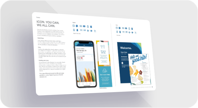 18 ALASKA AIRLINES BRAND GUIDELINES Icons ICON. YOU CAN. WE ALL CAN. Our icons are friendly, modern & confident. They’ve been designed for the digital space, as well as printed assets. We only show a few samples here, but many more have been developed and are available in our icon library. You can find access to that library through our full icon guidelines. Digital Sizes Icons can be scaled to provide 3 sizes: small (16px), medium (24px), and large (32px). Rare cases allow for larger sizes; start with the large size first as it has more details and use the guidelines to create the illustration. Color Use the color palette that’s directly related to where the icons will be used/displayed – print icons can use our core brand colors. For digital, use the digital color palette. Color should be used strategically; for example, use black or Orca when aligning an icon with static text, or use an actionable color like Digital Atlas Blue when the icon is included as part of a link. Creating new icons We recommend Adobe Illustrator (or, secondarily, Sketch App) for icon creation. Our Alaska Icon Guidelines document has a number of rules to follow to help your icon fit in with the set, including overall size, line weight, corner radius, color, and pointers on how to make your icon pixel perfect (important for a crisp and readable icon in digital spaces). For a copy of the most recent icon files and usage guidelines, contact Digital-Experience-Guide@ alaskaair.com Digital Print Atlas Blue Digital Atlas Blue Email marketing