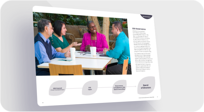 ESG Team ESG Council (Cross-Functional Team) ESG Governance Albertsons Companies is committed to responsible corporate governance. Our ESG Team collaborates with teams and leaders across our company to help drive and report on our environmental and social impact. Our ESG Council brings together leaders that drive initiatives within our product, people, planet, and community reporting platforms to report progress and discuss new programs, risks, and opportunities. Our Governance, Compliance & ESG Board Committee oversees risks associated with corporate governance, business conduct and ethics, ESG, and the management of compliance and regulatory risks. Management teams regularly report on applicable risks and opportunities to the relevant Board committees or the full Board of Directors. Board of Directors Governance, Compliance & ESG Board Committee 36 Environmental Social Governance Report 2020 37 ESG Governance