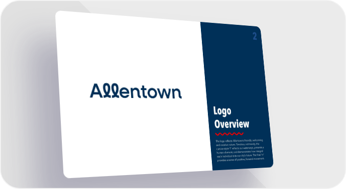 The logo reflects Allentown’s friendly, welcoming and creative nature. Timeless, not trendy, the cursive-style “l” reflects our waterways, presents a human element, and demonstrates how integral each individual is to our city’s future. The final “n” provides a sense of positive, forward-movement. 2 Logo Overview