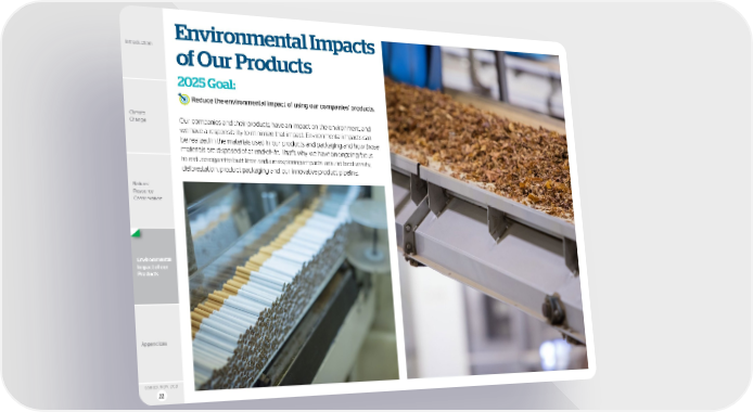 22 ISSUED: NOV. 2021 Our companies and their products have an impact on the environment, and we have a responsibility to minimize that impact. Environmental impacts can be realized in the materials used in our products and packaging and how those materials are disposed of at end-of-life. That’s why we have an ongoing focus to reduce cigarette butt litter and are exploring impacts around biodiversity, deforestation, product packaging and our innovative product pipeline. Environmental Impacts of Our Products 2025 Goal: Reduce the environmental impact of using our companies’ products.