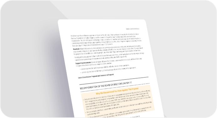 SHAREHOLDERPROPOSALS Racial and gender median pay gaps are accepted as the valid way of measuring pay inequity by the United States Census Bureau, Department of Labor, Organization for Economic Cooperation and Development, and International Labor Organization. The United Kingdom and Ireland mandate disclosure of median gender pay gaps, and the United Kingdom is considering mandating racial pay gap reporting. Amazon discloses data for United Kingdom employees, reporting a median base pay gap of 1.4 percent and median bonus gap of 25.1 percent. Resolved: Shareholders request Amazon report on median pay gaps across race and gender, including associated policy, reputational, competitive, and operational risks, and risks related to recruiting and retaining diverse talent. The report should bepreparedatreasonable cost, omitting proprietary information, litigation strategy and legal compliance information. Racial/gender pay gaps are defined as the difference between non-minority and minority/male and female median earnings expressed as a percentage of non-minority/male earnings (Wikipedia/OECD, respectively). SupportingStatement:Anannualreportadequateforinvestorstoassessperformancecould,withboarddiscretion, integrate base, bonus and equity compensation to calculate: • percentage median gender pay gap, globally and/or by country, where appropriate • percentage median racial/minority/ethnicity pay gap, US and/or by country, where appropriate EndofShareholderProposalandStatementofSupport RECOMMENDATIONOFTHEBOARDOFDIRECTORSONITEM17 WhyWeRecommendYouVoteAgainstThisProposal • Amazoncurrently provides extensive information on compensation by gender and by race/ethnicity. When evaluating 2021compensation,including base compensation, cash bonuses, and stock, our reported data demonstrates that womengloballyandintheUnitedStatesearned99.8centsand99.9cents,respectively, for every dollar that men earned performing the same jobs, and racial/ethnic minorities in the United States earned 99.2 cents for every dollar that white employees earned performing the same jobs. • Wearestronglycommittedtopromotinggenderandracialdiversity and inclusion in our workforce, including among our leadership ranks. • Wehaverobustprogramsthatarededicatedtoincreasingopportunities for underrepresented groups to enter the technology workforce, and we are investing in building the next generation of diverse technical leaders. WeCurrently Provide Extensive Information on Compensation by Gender and by Race/Ethnicity Webelievethatpeopleshouldreceive equal pay for equal work, regardless of gender, race, or ethnicity, and we are committedtocompensatingouremployeesfairlyandequitably. In light of the extensive reporting we already provide on our progress and ongoing activities promoting these objectives, as detailed below and reported publicly, we do not believe that the additional report on vaguely-described “median pay gaps across race and gender” requested by this proposal would enhanceunderstanding of or accountability for our diversity efforts. Amazonalreadyprovidesextensive statistical reporting on our workforce diversity and pay equity. We annually publish gender and race representation information on our diversity and inclusion website, which includes representation by job type, suchasfront-lineassociates,corporateemployees,andseniorleaders.Inaddition,toprovideevengreatertransparency, webeganpublishingourconsolidatedEEO-1reportsin2021.Amazonalsoannuallyprovidesinformationoncompensation bygenderandbyrace/ethnicity. As the proponent acknowledges, our reported gender and racial/ethnic group pay statistics demonstrate that Amazon pays our employees comparably when analyzing the work of people performing the samejobs. Whenevaluating 2021 compensation, including base compensation, cash bonuses, and stock, our reported data demonstrates that women globally and in the United States earned 99.8 cents and 99.9 cents, respectively, for every 2022ProxyStatement 71
