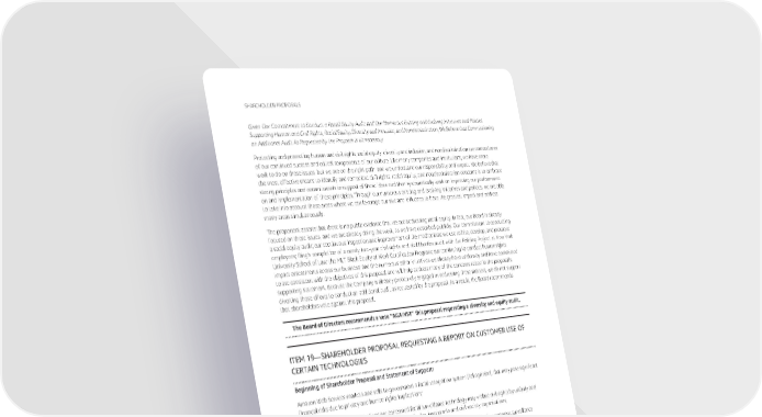 SHAREHOLDERPROPOSALS Given Our Commitment to Conduct a Racial Equity Audit and Our Numerous Existing and Evolving Initiatives and Policies SupportingHumanandCivilRights,RacialEquity,DiversityandInclusion,andNondiscrimination,WeBelievethatCommissioning anAdditional Audit As Requested by the Proposal is Unnecessary Protectingandpromotinghumanandcivilrights,racialequity,diversityandinclusion,andnondiscriminationarecornerstones of our continued success and critical components of our culture. Like many companies and institutions, we have more worktodoontheseissues,butweareontherightpath,andweunderstandourresponsibilityandimpact.Webelievethat the most effective means to identify and remediate civil rights, racial equity, and nondiscrimination concerns is to embrace strong principles and commitments in support of these ideas and then systematically work on improving our performance onandimplementationoftheseprinciples. Through our numerous existing and evolving initiatives and policies, we are able to take into account those areas where we can leverage our size and influence to have the greatest impact and address manyareassimultaneously. Theproponentasserts that there is no public evidence that we are addressing racial equity. In fact, our Board is already focused on these issues, and we are already doing the work, as we have described publicly. Our commitment to conducting aracial equity audit; our continuous inspection and improvement of the mechanisms we use to hire, develop, and promote employees; Ring’s completion of a nearly two-year civil rights and civil liberties audit with the Policing Project at New York University School of Law; the MLT Black Equity at Work Certification Program; our continuing to conduct human rights impact assessments across our business; and the numerous other initiatives we already have underway and have committed to are consistent with the objectives of this proposal and will help address many of the concerns raised in the proposal’s supporting statement. Because the Company is already proactively engaged in addressing these matters, we do not support diverting those efforts to conduct an additional audit as requested by the proposal. As a result, the Board recommends that shareholders vote against this proposal. TheBoardofDirectorsrecommendsavote“AGAINST”thisproposalrequestingadiversityandequityaudit. ITEM19—SHAREHOLDERPROPOSALREQUESTINGAREPORTONCUSTOMERUSEOF CERTAINTECHNOLOGIES BeginningofShareholderProposalandStatementofSupport: AmazonWebServicesmarketsandsellstogovernmentafacialrecognitionsystem(Rekognition), that may pose significant financial risks due to privacy and human rights implications; Humanandcivilrights organizations are concerned facial surveillance technology may violate civil rights by unfairly and disproportionately targeting and surveilling people of color, immigrants and civil society organizations; Nearly 70 organizations asked Amazon to stop selling Rekognition, citing its role enabling “government surveillance infrastructure”; TheAmericanCivil Liberties Union found Rekognition matched 28 members of Congress, incorrectly identifying them as individuals who have been arrested for a crime, then found Rekognition falsely matched 1 in 5 California lawmakers. Other research shows Rekognition is worse at identifying black women than white men and misgenders nonbinary people; Multiple cities and states have banned government facial technology. In 2021, a federal ban was reintroduced, and United Nations High Commissioner for Human Rights urged a moratorium on the sale and use of artificial intelligence systems until adequate safeguards exist, also calling for a ban on artificial intelligence applications inconsistent with international 1 humanrightslaw. There is little evidence our Board of Directors, as part of its fiduciary oversight, has rigorously assessed risks to Amazon’s financial performance, reputation and shareholder value associated with privacy and human rights threats to customers and stakeholders; For 3 years, similar Amazon proposals have received increasing shareholder support. In 2021, it received 34.3 percent support. 82