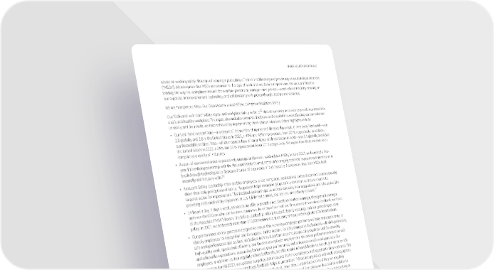 SHAREHOLDERPROPOSALS advise on working safely. This sort of training is particularly effective in addressing and preventing musculoskeletal disorders (“MSDs”). We recognize that MSDs are common in the type of work that we do in our operations. We are committed to leading the way for workplaces around the world to proactively manage—and prevent—work-related MSDs by drawing on our expertise in innovation and technology and collaborating with proven thought leaders and scientists. WeareTransparent About Our Commitment to and Efforts to Improve Workplace Safety 32 Our“Delivered with Care” safety report and workplace safety website discuss our many initiatives to provide our associates asafeandhealthyworkplace.Thereportalsoincludesextensivedisclosureanddetailedmetricsreflecting our commitment to safety and the results we have achieved by implementing these various initiatives. Select highlights include: • OurLostTimeIncidentRate—ameasureofthenumberofinjuriesandillnessesthatresultintimeawayfromwork—was 2.3 globally and 2.6 in the United States in 2020, a 43% and 49% improvement from 2019, respectively. In addition, our Recordable Incident Rate—which measures how often an injury or illness occurs at work—was 5.1 globally and 6.5 in the United States in 2020, a 24% and 25% improvement from 2019, respectively. We report how these incident rates comparetoavarietyofindustries. • As part of our commitment to proactively manage and prevent work-related MSDs, in June 2021, we launched a five- year $12 million partnership with the National Safety Council, aimed at leveraging academic expertise and investment in breakthrough technologies to decrease the rate of occurrence of and expedite the recovery time from MSDs, both 33 internally and industry-wide. • Amazon’sSafety Leadership Index enables employees to use computers, workstations, or hand scanners to anonymously share their daily perceptions of safety. The process helps managers gauge safety sentiment at their site and take targeted action for improvement. This feedback system helps us address concerns, hear suggestions, and take action, like 34 providing additional safety equipment at U.S. fulfillment centers, sort centers, and delivery stations. • 24hoursaday,7daysaweek,associatesareabletoprovidedirectfeedbacktotheirmanager,theirgeneral manager, andeventheCEOonwhatcanbedonetoimprovethesafetyofourfacilities.Theycandothisviadirectfeedback,ourVoice of the Associate (“VOA”) Boards, the Safety Leadership Index (discussed above), meetings, and our general open-door policy. In 2021, we addressed more than 210,000 comments, questions, and issues through the VOA Boards alone. • Ourperformancereviewprocessis designed to ensure that we review employee performance fairly and consistently, to identify employees for recognition and for support, and to account for daily changes to the business—all while prioritizing safe work performance and actions. We believe individual performance metrics are a key business tool for ensuring high-quality work, operational efficiency, and fairness in employee engagement. We assess performance based on safe andachievable expectations, accounting for tenure, peer performance, and adherence to safe work practices. Our employees, in addition to their regularly scheduled breaks, are able to take informal breaks to stretch, get water, or talk toamanager.Inmid-2021,weupdatedourpolicythatmeasuresthetimeemployeesareloggedontotheirworkarea.This measurement,alongwithdirectemployeefeedback,helpsusunderstandifthereareanyissueswithtoolsandequipment that employees use to do their jobs. Employees are only questioned about unproductive time if they are regularly absent for long periods. In 2021, less than 0.4% of employees were separated from Amazon due to their inability to perform their jobs. Also in 2021, 83% of coaching was positive and was provided to employees who were meeting or exceeding expectations. • Werelyonproactivedata(inspections, assessments, and audits) to gauge whether we are focusing on the right risk controls, applying them correctly, and whether the controls are producing desired results. Thousands of safety inspections occur each day across our network. During these daily inspections, senior leaders from all the facility’s teams spend time ontheproductionfloor to evaluate the work environment, talk to associates about areas for improvement, and move learnings into immediate actions. • Werecruit experts in occupational health, safety, industrial hygiene, transportation, public health, technology, data analytics, engineering, and operations to design and synthesize innovative safety solutions. • Wehaveincurredmorethan$15billioninCOVID-19-relatedcoststohelpkeepouremployeessafeanddeliverforour customers, and also committed an additional over $300 million to non-COVID-19-related safety projects in 2021. 32 Seehttps://www.aboutamazon.com/workplace/safety. 33 Seehttps://press.aboutamazon.com/news-releases/news-release-details/amazon-and-national-safety-council-create-first-its-kind. 34 Seehttps://www.aboutamazon.com/news/operations/safety. 2022ProxyStatement 47