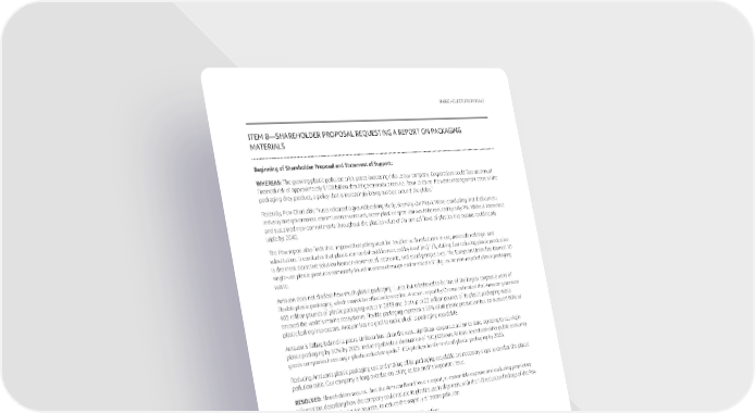 SHAREHOLDERPROPOSALS ITEM8—SHAREHOLDERPROPOSALREQUESTINGAREPORTONPACKAGING MATERIALS BeginningofShareholderProposalandStatementofSupport: WHEREAS:Thegrowingplasticpollutioncrisis poses increasing risks to our company. Corporations could face an annual financial risk of approximately $100 billion should governments require them to cover the waste management costs of the 1 packaging they produce, a policy that is increasingly being enacted around the globe. Recently, Pew Charitable Trusts released a groundbreaking study, Breaking the Plastic Wave, concluding that if all current industryandgovernmentcommitmentsweremet,oceanplasticdepositionwouldbereducedbyonly7%.Withoutimmediate andsustained new commitments throughout the plastics value chain, annual flows of plastics into oceans could nearly triple by 2040. The Pew report also finds that improved recycling must be coupled with reductions in use, materials redesign, and substitution. It concludes that plastic demand should be reduced by least [sic] 1/3, stating that reducing plastic production is the most attractive solution from environmental, economic, and social perspectives. The European Union has banned 10 single-use plastic products commonly found in ocean cleanups and enacted a $1/kg tax on non-recycled plastic packaging waste. Amazondoesnotdisclosehowmuchplasticpackagingituses,butisbelievedtobeoneofthelargestcorporateusersof flexible plastic packaging, which cannot be effectively recycled. A recent report by Oceana estimated that Amazon generated 465million pounds of plastic packaging waste in 2019 and that up to 22 million pounds of its plastic packaging waste entered the world’s marine ecosystems. Flexible packaging represents 59% of all plastic production but an outsized 80% of plastic leaking into oceans. Amazon has no goal to make all of its packaging recyclable. Amazonisfalling behind its peers. Unilever has taken the most significant corporate action to date, agreeing to cut virgin plastic packaging by 50%by2025,includingabsoluteeliminationof100,000tons.Atleastseventeenotherpublicconsumer goodscompanieshavevirginplastic reduction goals.2 IKEA pledges to eliminate all plastic packaging by 2028. Reducing Amazon’s plastic packaging use and making all its packaging recyclable are necessary steps to combat the plastic pollution crisis. Our company is long overdue on taking action on this important issue. RESOLVED:ShareholdersrequestthattheAmazonBoardissueareport,atreasonableexpenseandexcludingproprietary information,describinghowthecompanycouldreduceitsplasticsuseinalignmentwiththe1/3reductionfindingsofthePew Report, or other authoritative sources, to reduce the majority of ocean pollution. SUPPORTINGSTATEMENT:Thereportshould,atBoarddiscretion: • Quantify the weight of total plastic packaging used by the company; • Evaluate the benefits of dramatically reducing the amount of plastics used in our packaging; • Assess the reputational, financial, and operational risks associated with continuing to use substantial amounts of plastic packaging while plastic pollution grows unabated; • Describe any necessary reduction strategies or goals, materials redesign, transition to reusables, substitution, or reductions in use of virgin plastic. 1 https://www.pewtrusts.org/-/media/assets/2020/07/breakingtheplasticwave_report.pdf 2 https://www.asyousow.org/report-page/plastic-pollution-scorecard-2021/ EndofShareholderProposalandStatementofSupport 2022ProxyStatement 41