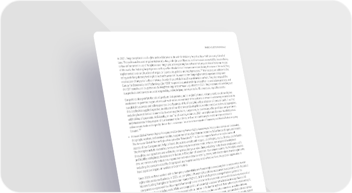 SHAREHOLDERPROPOSALS In 2021, Ring completed a civil rights and civil liberties audit with the Policing Project at New York University School of Law.Theauditwasfocusedonpotentialracialjustice,civilrights,civilliberties,anddemocraticaccountabilityissuesrelating to law enforcement’s use of Neighbors and Ring’s practices regarding law enforcement requests for information. As part oftheaudit,thePolicingProjectpresentedRingwithadetailedsetofrecommendations.Duringthecourseoftheaudit,Ring 103 implementedoveronehundredchangestoitsproducts,policies, and legal processes. For instance, in addition to the safeguards Ring already had in place such as human content moderation, Ring implemented important design and moderation changes to further minimize the risk of potentially biased or problematic content. Ring also engaged the Center for Democracy and Technology (the “CDT”) to provide counsel and help strengthen its moderation practices, and theCDTcontributedtoupdatestotheNeighborsAppandcommunityguidelinesin2021.Ringiscommittedtomakingsure our products and services are used responsibly, and to helping communities build a more just, equitable society. Ourpolicies also prohibit the sale of products that promote, incite, or glorify hatred, violence, racial, sexual, or religious intolerance or promote organizations with such views. We maintain these policies to ensure a welcoming environment for our global customers and selling partners to do business while offering the widest selection of items on earth. If we find thatasellerhassuppliedaproductinviolationofouroffensiveproductspolicies,wetakecorrectiveactions,asappropriate, including but not limited to immediately removing the listing, suspending or terminating seller privileges, and permanent withholding of payments. Additionally, on our Twitch service, in January 2021 we implemented a new Hateful Conduct andHarassmentPolicyaspartofourCommunityGuidelines,andwearecontinuingtoinvestinimprovementsto enforcement tools and capacity that make it easier and faster to review reports of harassing and hateful behavior going forward.104 • AmazonGlobalHumanRightsPrinciples and Conducting Human Rights Assessments. We are also committed to ensuring thepeople,workers,andcommunitiesthatsupportourentirevaluechainaretreatedwithfundamentaldignityandrespect. TheAmazonGlobalHumanRightsPrinciples(the“Principles”)105 outline our approach to human rights across all aspects of our Company and help to frame the actions we take with respect to civil rights, equity, diversity, and inclusion. ThePrinciples include several key areas we are focusing on to promote safe, inclusive, and respectful workplaces throughout our operations and within the companies along our value chain, including: freely chosen employment; safe and healthy workplaces; diversity and inclusion; and freedom of association. Our commitment to the Principles requires that we continuously evaluate our operations and value chain to identify, assess, and address salient human rights risks, including the concerns raised by the proposal, and to prioritize key areas where we have the greatest opportunity to have a positive impact on workers and communities. Since 2020, we have worked with a third-party sustainability and human rights consulting firm to assess salient human rights risks across our business. In 2021, we completed a human rights saliency assessment in accordance with the United Nations Guiding Principles on Business and Human Rights (“UNGP”), which presents comprehensive guidance for companiestoreportonhowtheyrespecthumanrightsandrecommendsasystematicreviewofrisksasawaytoprioritize a company’s human rights work. While we recognize that a human rights assessment is broader in scope than a civil rights or racial equity audit, the UNGP pays particular attention to the human rights of those who may be disadvantaged, marginalized, or excluded from society, including people belonging to ethnic or other minorities, as well as children, 106 women,indigenouspeoples, or persons with disabilities. In conducting this assessment, we consulted a diverse group of external human rights experts and incorporated their feedback into the results. We benchmarked the results against internationally recognized human rights standards. This assessment identified a set of priority human rights values and keysalienthumanrightsrisksforAmazon,whichincludeddiversity,equity,andinclusion.Ourexistingpoliciesandprograms currently address many of these risks; however, we will use the assessment results to build on current practice and prioritize our human rights due diligence efforts. 103 For more information on the Policing Project’s civil rights and civil liberties audit, see https://www.policingproject.org/ring. 104 Seehttps://www.twitch.tv/p/en/legal/transparency-report/; https://blog.twitch.tv/en/2020/12/09/introducing-our-new-hateful-conduct-harassment- policy/. 105 AmazonGlobalHumanRightPrinciples,available at https://sustainability.aboutamazon.com/people/human-rights/principles (“As outlined in our Code of Business Conduct and Ethics, we do not tolerate discrimination.”). 106 See United Nations Guiding Principles on Business and Human Rights (2011), available at https://www.ohchr.org/documents/publications/ guidingprinciplesbusinesshr_en.pdf. 2022ProxyStatement 81