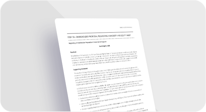 SHAREHOLDERPROPOSALS ITEM18—SHAREHOLDERPROPOSALREQUESTINGADIVERSITYANDEQUITYAUDIT BeginningofShareholderProposalandStatementofSupport: Racial Equity Audit Resolved Shareholders of Amazon.com, Inc. (“Amazon”) request that the Board of Directors commission a racial equity audit analyzing Amazon’simpactsoncivil rights, diversity, equity and inclusion, and the impacts of those issues on Amazon’s business. The audit may, in the board’s discretion, be conducted by an independent third party with input from civil rights organizations, employees, communities in which Amazon operates and other stakeholders. A report on the audit, prepared at reasonable cost and omitting confidential or proprietary information, should be publicly disclosed on Amazon’s website. SupportingStatement ThemurderofGeorgeFloyd,andthepublicoutcryoverthekillings of other Black men and women, has galvanized the movementforracial justice and equity. This movement has focused the attention of media and policymakers on systemic racism, racial violence, and inequities throughout society. Companies would benefit from assessing the potential risks of their products, services and overall corporate practices that are or are perceived to be discriminatory, racist, or increasing inequalities. Companies that fail to assess these risks could face controversies that result in customer and employee attrition, negative press, significant fines or regulatory inquiries. In 2020, Amazon tweeted its solidarity with the fight against systemic racism. Since then, Amazon has taken some measures to address racial justice and equity, including committing financial resources and publishing workforce diversity data. However, Amazonfacescontroversies, some significant, that pose various risks and raise questions related to the company’s overall strategy and the company’s alignment with its public statements. This includes: • Controversies related to workforce diversity, treatment of minority workers, environmental justice in communities of color, surveillance and civil rights; • Lawsuits alleging discriminatory hiring and promotion practices, and alleging failure to protect warehouse workers, who are mostly people of color; and, • Criticism regarding its products and services, and their adverse impacts on civil rights and communities of color. There is no public evidence that Amazon is assessing the potential or actual negative impacts of its policies, practices, products, and services through a racial equity lens. Amazonhasstateditisconductingahumanrightsassessment,whichisnotanauditconductedbyauditorswhoare experiencedinrootingoutbiasesanddiscrimination.Amazon’sassessmentwouldnotaddressthecoreissuesofthisproposal, including how Amazon is implementing its racial equity, diversity and inclusion strategy, assessing effectiveness, ensuring sufficient oversight mechanisms, and addressing potential structural impediments and implicit biases. Furthermore, companies, like Starbucks, still faced risks and controversies related to their impacts on people of color after completingsimilar human rights reporting. Following those controversies, Starbucks conducted an independent racial equity audit that assisted them in identifying, prioritizing, and implementing improvements. In 2021, 44 percent of Amazon shareholders supported a proposal seeking such an audit. Because of the pattern and magnitude of controversies repeatedly facing Amazon, we believe that it is in shareholders’ best interests for Amazon to proactively identify and mitigate risks through an independent racial equity audit. EndofShareholderProposalandStatementofSupport 2022ProxyStatement 75
