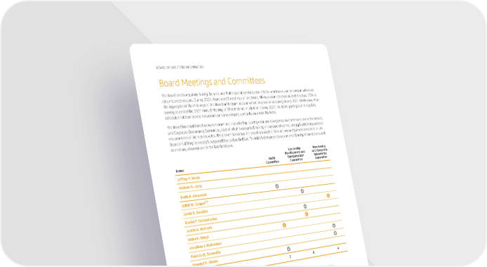 BOARDOFDIRECTORSINFORMATION Board Meetings and Committees TheBoardmeetsregularlyduring the year, and holds special meetings and acts by unanimous written consent whenever circumstances require. During 2021, there were 5 meetings of the Board. All incumbent directors attended at least 75% of the aggregate of the meetings of the Board and committees on which they served occurring during 2021. All directors then serving attended the 2021 Annual Meeting of Shareholders. In addition, during 2021, the Board participated in regularly scheduled teleconference discussions on various topics, generally on a monthly basis. TheBoardhasestablishedanAuditCommittee,aLeadershipDevelopmentandCompensationCommittee,andaNominating andCorporateGovernanceCommittee,eachofwhichiscomprisedentirelyofdirectorswhomeettheapplicableindependence requirements of the Nasdaq rules. The Committees keep the Board informed of their actions and provide assistance to the Boardinfulfillingitsoversightresponsibilitytoshareholders.Thetablebelowprovidescurrentmembershipinformationaswell as meeting information for the last fiscal year. Leadership Nominating Developmentand andCorporate Audit Compensation Governance Name Committee Committee Committee Jeffrey P. Bezos AndrewR.Jassy Keith B. Alexander (1) Edith W. Cooper JamieS.Gorelick Daniel P. Huttenlocher Judith A. McGrath Indra K. Nooyi JonathanJ.Rubinstein Patricia Q. Stonesifer WendellP.Weeks Total Meetings in 2021 764 CommitteeChair (1) Ms. Cooper joined the Leadership Development and Compensation Committee on September 20, 2021. Thefunctions performed by these Committees, which are set forth in more detail in their charters, are summarized below. Audit Committee TheAuditCommitteerepresentsandassists the Board in fulfilling its oversight responsibility relating to our financial statements and financial reporting process, the qualifications, independence, and performance of our independent auditors, the performance of our internal audit function, legal and regulatory matters, and our compliance policies and procedures. In addition, prior to the formation in 2022 of the ad hoc committee to oversee data protection and cybersecurity matters, the AuditCommitteewasresponsibleforoversightofsuchmatters.TheBoardhasdesignatedeachofMr.WeeksandMrs.Nooyi as an Audit Committee Financial Expert, as defined by Securities and Exchange Commission (“SEC”) rules. 14