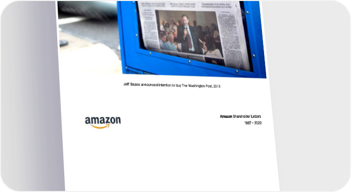 Amazon Shareholder Letters 1997-2020 | Flipbook Page 61 Page 63Jeff Bezos announced intention to buy The Washington Post, 2013