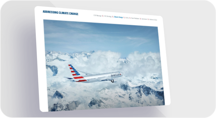 American Airlines ESG Report Page 8 Page 10\\ Indexes & Data \\ Customers \\ Team Members \\ Safety \\ ESG Strategy CEO Message \\ Climate Change ADDRESSING CLIMATE CHANGE