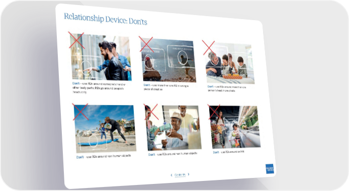 Relationship Device: Don’ts Don’t – use RDs around someone’s hand or Don’t – use more than one RD in a single Don’t – use RDs around more than one other body parts; RDs go around people’s piece of creative person’s head in one photo heads only Don’t – use RDs around non-human objects Don’t – use RDs around non-human objects Don’t – use RDs around a child ‹ Contents ›