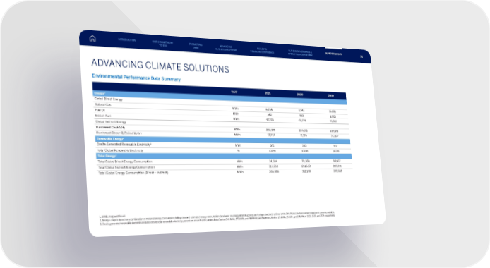 ADVANCING CLIMATE SOLUTIONS Environmental Performance Data Summary Unit 1 2021 2020 2019 Energy 2 Global Direct Energy Natural Gas MWh 6,258 8,941 16,881 Fuel Oil MWh 542 853 2,021 Mobile Fuel MWh 4 7, 7 0 5 60,774 75,055 Global Indirect Energy Purchased Electricity MWh 202,170 224,051 257,569 Purchased Steam & Chilled Water MWh 13,233 1 7, 5 7 9 25,462 Renewable Energy 2 Onsite Generated Renewable Electricity 3 MWh 561 593 507 Total Global Renewable Electricity % 100% 100% 100% Total Energy 2 Total Global Direct Energy Consumption MWh 54,504 70,568 93,957 Total Global Indirect Energy Consumption MWh 215,394 241,630 283,031 Total Global Energy Consumption (Direct + Indirect) MWh 269,898 312,198 376,988 1. MWh: megawatt hours 2. Energy usage is based on a combination of metered energy consumption billing data and estimated energy consumption data based on energy intensity per square footage standards outlined in the GHG Protocol where metered data is not currently available. 3. Onsite generated renewable electricity includes onsite solar renewable electricity generation at our North Carolina Data Center (546 MWh, 577 MWh, and 489 MWh) and Brighton UK office (15 MWh, 16 MWh, and 18 MWh) in 2021, 2020, and 2019, respectively. INTRODUCTION PROMOTING DE&I ADVANCING CLIMATE SOLUTIONS BUILDING FINANCIAL CONFIDENCE OUR ESG GOVERNANCE & OPERATING RESPONSIBLY SUPPORTING DATA OUR COMMITMENT TO ESG 96
