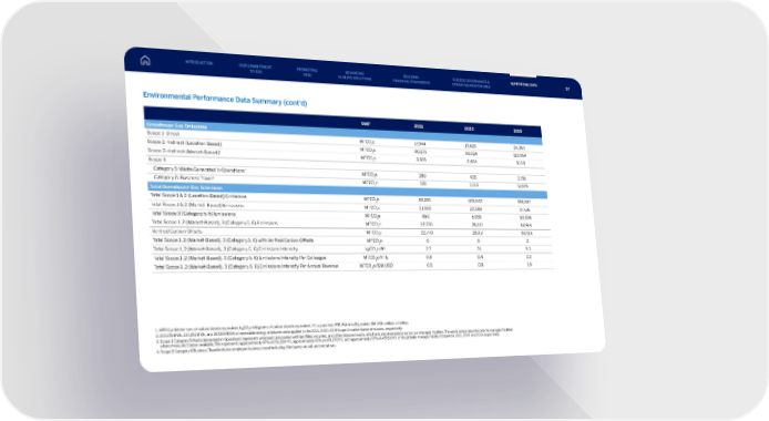 Unit 1 2021 2020 2019 Greenhouse Gas Emissions Scope 1–Direct MTCO 2 e 17,944 19,620 24,363 Scope 2–Indirect (Location-Based) MTCO 2 e 80,275 90,024 113,964 Scope 2–Indirect (Market-Based) 2 MTCO 2 e 3,976 2,464 3,153 Scope 3 Category 5: Waste Generated in Operations 3 MTCO 2 e 280 420 1,719 Category 6: Business Travel 4 MTCO 2 e 570 5,513 51,679 Total Greenhouse Gas Emissions Total Scope 1 & 2 (Location-Based) Emissions MTCO 2 e 98,219 109,643 138,327 Total Scope 1 & 2 (Market-Based) Emissions MTCO 2 e 21,920 22,084 27,516 Total Scope 3 (Category 5, 6) Emissions MTCO 2 e 850 5,933 53,398 Total Scope 1, 2 (Market-Based), 3 (Category 5, 6) Emissions MTCO 2 e 22,770 28,017 80,914 Verified Carbon Offsets MTCO 2 e 22,770 28,017 80,914 Total Scope 1, 2 (Market-Based), 3 (Category 5, 6) with Verified Carbon Offsets MTCO 2 e 0 0 0 Total Scope 1, 2 (Market-Based), 3 (Category 5, 6) Emissions Intensity kgCO 2 e/ft 2 2.7 3.1 9.3 Total Scope 1, 2 (Market-Based), 3 (Category 5, 6) Emissions Intensity Per Colleague MTCO 2 e/FTE 0.4 0.4 1.3 Total Scope 1, 2 (Market-Based), 3 (Category 5, 6) Emissions Intensity Per Annual Revenue MTCO 2 e/$M USD 0.5 0.8 1.9 Environmental Performance Data Summary (cont'd) 1. MTCO 2 e: Metric tons of carbon dioxide equivalent; kgCO 2 e: kilograms of carbon dioxide equivalent; ft 2 : square feet; FTE: Full-time Equivalent; $M USD: millions of dollars 2. 202,175 MWh, 224,051 MWh, and 257,569 MWh of renewable energy attributes were applied to the 2021, 2020, 2019 Scope 2 market-based emissions, respectively. 3. Scope 3 Category 5 Waste Generated in Operations represents emissions associated with landfilled, recycled, and other disposed waste, which includes incineration across our managed facilities. The waste data is reported only for managed facilities where measured data is available. This represents approximately 67% (4,791,834 ft 2 ), approximately 62% (4,679,278 ft 2 ), and approximately 67% (4,457,816ft 2 ) of the globally managed facility footprint in 2021, 2020 and 2019, respectively. 4. Scope 3 Category 6 Business Travel includes employee business travel including third-party air, rail, and rental cars. INTRODUCTION PROMOTING DE&I ADVANCING CLIMATE SOLUTIONS BUILDING FINANCIAL CONFIDENCE OUR ESG GOVERNANCE & OPERATING RESPONSIBLY SUPPORTING DATA OUR COMMITMENT TO ESG 97