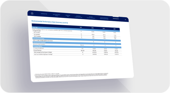 Environmental Performance Data Summary (cont'd) Unit 1 2021 2020 2019 Paper Use Direct marketing, customer communications, and office paper from certified responsibly managed forests % 96.3% 95.0% 87.5% FSC Certified % 88.2% 86.4% 71.7% SFI Certified % 7. 6 % 8.2% 14.4% PEFC Certified % 0.5% 0.3% 1.4% Environmental Ratings CDP Climate Change Questionnaire Score A- A- A Environmental Violations Environmental Violations Number 0 0 0 Company Metrics Employee Headcount FTE 64,000 63,700 64,500 Annual Revenue $M USD $42,380 $36,087 $43,556 Total Average Building Square Footage 2 ft 2 8,459,570 9,180,484 8,676,452 Total Year-End Building Square Footage 2 ft 2 8,424,281 8,641,116 8,726,722 1. FTE: Full-time Equivalent; $M USD: millions of dollars; ft 2 : square feet 2. Total average and year-end building square footage includes all leased and owned facilities actively occupied by American Express (excluding parking lot square footage), which covers managed facilities, field sites, and data centers. Managed facilities are individual properties operationally managed by our global real estate team and housing critical business functions. Field sites are individual properties that are not operationally managed by our global real estate team but directly by our business units. These are typically smaller sites, less than 30,000 square feet (including airport lounges, foreign exchange kiosks, and sales offices) that are owned or leased by American Express. INTRODUCTION PROMOTING DE&I ADVANCING CLIMATE SOLUTIONS BUILDING FINANCIAL CONFIDENCE OUR ESG GOVERNANCE & OPERATING RESPONSIBLY SUPPORTING DATA OUR COMMITMENT TO ESG 99