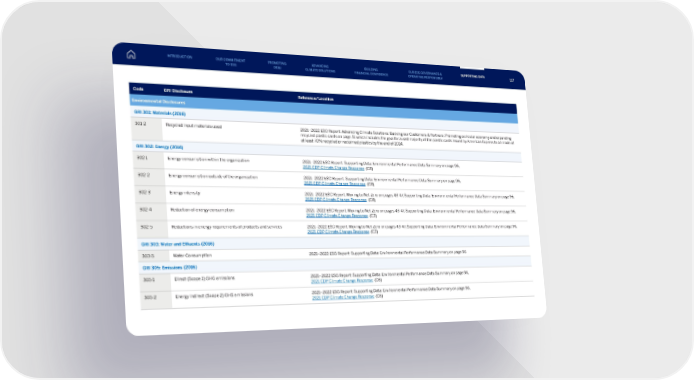 Code GRI Disclosure Reference/Location Environmental Disclosures GRI 301: Materials (2016) 301-2 Recycled input materials used 2021–2022 ESG Report: Advancing Climate Solutions: Backing our Customers & Partners: Promoting a circular economy and expanding recycled plastic cards on page 51 which includes the goal for a vast majority of the plastic cards issued by American Express to be made of at least 70% recycled or reclaimed plastics by the end of 2024. GRI 302: Energy (2016) 302-1 Energy consumption within the organization 2021–2022 ESG Report: Supporting Data: Environmental Performance Data Summary on page 96, 2021 CDP Climate Change Response (C8) 302-2 Energy consumption outside of the organization 2021–2022 ESG Report: Supporting Data: Environmental Performance Data Summary on page 96, 2021 CDP Climate Change Response (C8) 302-3 Energy intensity 2021–2022 ESG Report: Moving to Net-Zero on pages 43-47, Supporting Data: Environmental Performance Data Summary on page 96, 2021 CDP Climate Change Response (C8) 302-4 Reduction of energy consumption 2021–2022 ESG Report: Moving to Net-Zero on pages 43-47, Supporting Data: Environmental Performance Data Summary on page 96, 2021 CDP Climate Change Response (C3) 302-5 Reductions in energy requirements of products and services 2021–2022 ESG Report: Moving to Net-Zero on pages 43-47, Supporting Data: Environmental Performance Data Summary on page 96, 2021 CDP Climate Change Response (C3) GRI 303: Water and Effluents (2016) 303-5 Water Consumption 2021–2022 ESG Report: Supporting Data: Environmental Performance Data Summary on page 96 GRI 305: Emissions (2016) 305-1 Direct (Scope 1) GHG emissions 2021–2022 ESG Report: Supporting Data: Environmental Performance Data Summary on page 96, 2021 CDP Climate Change Response (C6) 305-2 Energy indirect (Scope 2) GHG emissions 2021–2022 ESG Report: Supporting Data: Environmental Performance Data Summary on page 96, 2021 CDP Climate Change Response (C6) INTRODUCTION PROMOTING DE&I ADVANCING CLIMATE SOLUTIONS BUILDING FINANCIAL CONFIDENCE OUR ESG GOVERNANCE & OPERATING RESPONSIBLY SUPPORTING DATA OUR COMMITMENT TO ESG 117