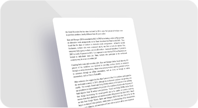 the Great Recession but has since declined. In 2014, some 18.3 percent of workers were in part-time positions, hardly different from 20 years earlier. Katz and Krueger (2016) extended the BLS’s CWS by including a subset of the questions on alternative work arrangements on the Rand American Life Panel in fall 2015. They found that the share of workers in alternative work arrangements – defined to include freelancers, workers who were contracted out by one firm to work for another firm, temporary help agency workers, and on-call workers – increased from about 11 percent in 2005 to nearly 16 percent in 2015. It is important to note that the CWS and Rand data are limited to individuals’ main job. Many workers who participate in the on-demand economy may do so as a secondary job. Counting both main and secondary jobs, Katz and Krueger further found that only 0.5 percent of the workforce was involved in providing services directly to customers through an online intermediary. About twice as many workers said they provided services to customers through an offline intermediary, such as Avon, as through an online intermediary, such as Uber or Taskrabbit. Other estimates also suggest that less than 1 percent of the U.S. workforce participated in the on-demand economy in 2015, although the on-demand workforce was growing very rapidly. For example, Farrell and Greig (2016a) estimate of 0.6 percent of the working- age population (or approximately 0.4 percent of the workforce) based on the frequency of bank deposits from 30 online work platforms. Farrell and Greig (2016b) further found that, though decelerating, the annual growth rate in the number of workers receiving income from these platforms each month exceeded 100 percent in the fall of 2015. Based on data from Google Trends, Harris and Krueger (2015) infer that Uber is by far the largest on-demand labor platform, which makes an understanding of the characteristics, labor supply behavior, and motivation of Uber’s driver-partners all the more important. BSG Survey of Uber's Driver-Partners Uber contracted with the Benenson Survey Group (BSG) to conduct a web survey of Uber’s driver-partners in December 2014 in 20 market areas that represented 85 percent of all of Uber’s U.S. driver-partners. The survey was conducted again in November 2015 in 25 market areas that currently represent 68 percent of Uber’s U.S. driver-partners. A total of 601 drivers completed the 2014 survey and 833 drivers completed the 2015 survey. Although the response rate to the surveys was only around 10 percent, based on a comparison of aggregated administrative data, the (weighted) respondents do not appear to be very different from the full set of driver-partners in terms of their average work 5