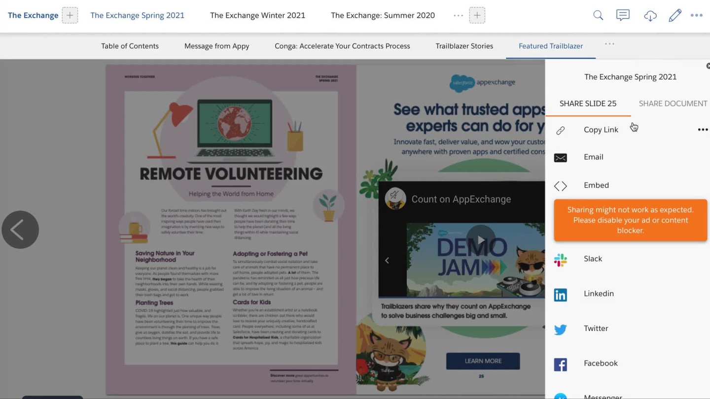 KEY TAKEAWAYS AppExchange is the hub of Salesforce ecosystem that contains interactive guides, publications & magazines: Live, updatable content that can be broadly used & shared between all Salesforce teams: directors, managers, content / product markets & designers Adopted internally, in partner-only communications and public salesforce properties and social platforms Hubs provide clear structure & organization for the 115+ interactive experiences in the Salesforce ecosystem Successful Sharing of the Platform embeds on the Salesforce website AppExchange platform generate a lot of traction & engagement Book a meeting