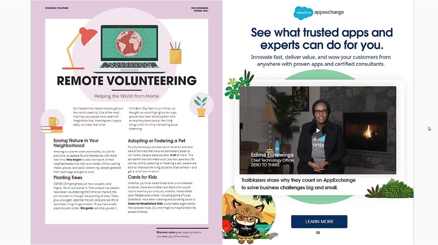 AWARD-WINNING EXPERIENCES INTERACTIVE E-BOOK & GUIDES MULTIMEDIA MAGAZINE ON DEMAND CONTENT PORTAL Salesforce Salesforce AppExchange Salesforce AppExchange Awards Won 3 platinum awards 1 Gold
