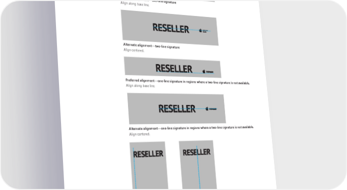 Store Exterior, Signature Placement Preferred alignment—two-line signature Align along base line. Alternate alignment—two-line signature Align centered. Preferred alignment—one-line signature in regions where a two-line signature is not available. Align along base line. Alternate alignment—one-line signature in regions where a two-line signature is not available. Align centered. Preferred vertical alignment Alternate vertical alignment Align left. Align centered. Apple Identity Guidelines for Channel Affiliates and Apple-Certified Individuals August 2016 40