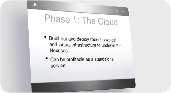Phase 1: The Cloud • Build-out and deploy robust physical and virtual infrastructure to underlie the Nexuses • Can be profitable as a standalone service AppNexus Page 19 Page 21