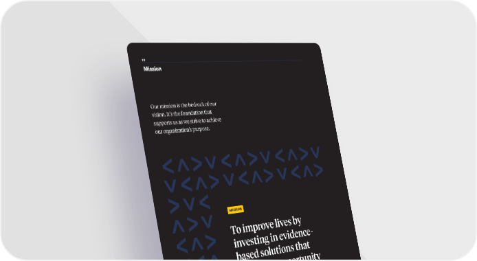 10 10 Mission To improve lives by investing in evidence- based solutions that maximize opportunity and minimize injustice. MISSION Our mission is the bedrock of our vision. It’s the foundation that supports us as we strive to achieve our organization’s purpose.