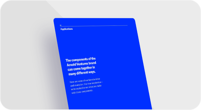 32 Here are some of our favorite ideas and examples. Use it as inspiration— we’re excited to see what you make with these components. The components of the Arnold Ventures brand can come together in many different ways. Applications