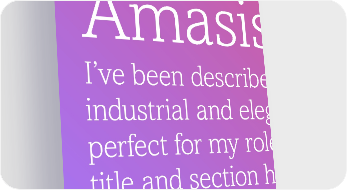 Typography Amasis Amasis I’ve been described as both industrial and elegant, which is perfect for my role as a project title and section header font. 44