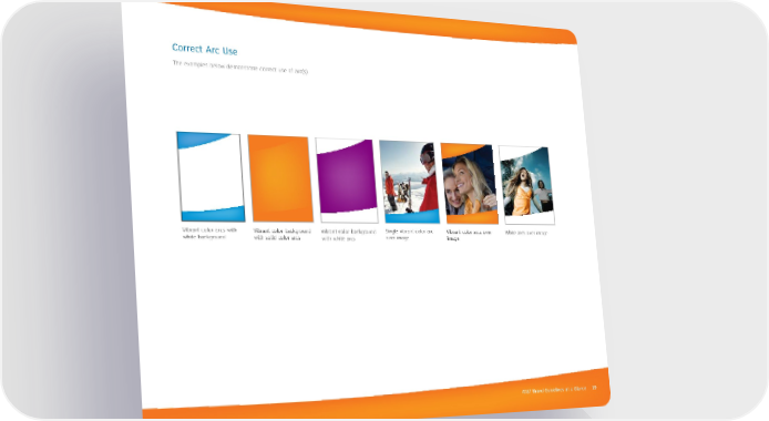 AT&T Brand Guidelines at a Glance 19 Correct Arc Use The examples below demonstrate correct use of arc(s). Vibrant color arcs with white background Single vibrant color arc over image Vibrant color background with solid color arcs Vibrant color arcs over image Vibrant color background with white arcs White arcs over image
