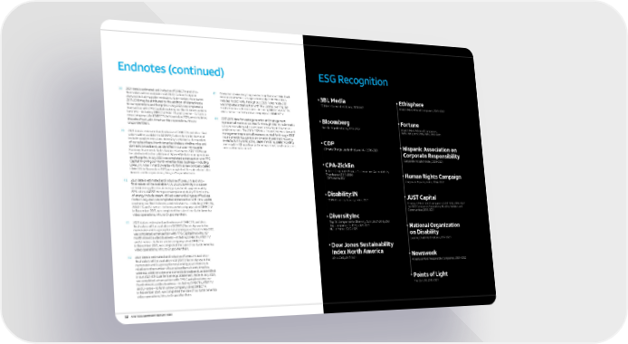 Endnotes (continued) ESG R ecognition 3BL M edia 100 Best Corporate Citizens; 2011-2021 Bloomberg Gender E qu ality I ndex, 2018-2022 C DP Climate Change Leadership Level (A-); 2016-2021 CPA-Zicklin Index o f Corporate Political Disclosure and Accountability T rendsetter ; 2019-2020 100% score; 2021 Disabi lity:IN 100% Disability Equality Index; 2021 DiversityInc Top 50 Companies for Diversity; 2001, 2007-2019, 2021 Top Companies for ESG; 2020-2021 Hall of Fame; 2020-2021 Dow J ones Su stai nabi lity Index N orth A merica 2010-2013, 2017-2021 Ethisphere World’s Most Ethical Companies; 2020-2022 Fortune World’s Most Admired Companies; 2009-2010, 2012, 2014-2015, 2017-2021 Hispanic Association on Corporate Responsibility Corporate Inclusion Index; 2009-2021 Human Rights Campaign Corporate Equality Index; 2004-2022 JUST Capital America’s Most JUST Companies (JUST 100); 2018-2022 Top 100 Companies Supporting Healthy Families and Communities; 2019, 2021 National Organization on Disability Leading Disability Employer; 2017-2021 Newsweek America’s Most Responsible Companies; 2020-2022 Points of Light The Civic 50; 2012-2021 39 2021 data is estimated and inclusive of DIRECTV and Vrio - final values will be available in Q2 2022; Carbon footprint does not include supplier emissions. Intensity is relative to the number of our subscribers (North America wireless, wireline voice and domestic broadband), as identified in our 2021 4th Quarter Earnings Statement. Note: Variances between 2017-2018 may be attributed to the addition of WarnerMedia to our operations and footprint. In July 2021, we completed a transaction with TPG Capital involving our North America video business – including DIRECTV, AT&T TV and U-verse – to form a new company called DIRECTV. In November 2021, we completed the sale of our Latin America video operations, Vrio, to Grupo Werthein. 40 2021 data is estimated and inclusive of DIRECTV and Vrio - final values will be available in Q2 2022; Electricity is a subset of total energy. Electrical energy represents approximately 82% of total AT&T energy consumption globally. Other forms of energy include steam, chilled water and all types of fuel use. Note: In July 2021, we completed a transaction with TPG Capital involving our North America video business – including DIRECTV, AT&T TV and U-verse – to form a new company called DIRECTV. In November 2021, we completed the sale of our Latin America video operations, Vrio, to Grupo Werthein. 41 2021 data is estimated and inclusive of DIRECTV and Vrio - final values will be available in Q2 2022; Electricity use is the numerator and is a proxy for total energy use. Note: In July 2021, we completed a transaction with TPG Capital involving our North America video business – including DIRECTV, AT&T TV and U-verse – to form a new company called DIRECTV. In November 2021, we completed the sale of our Latin America video operations, Vrio, to Grupo Werthein. 42 2021 data is estimated and inclusive of DIRECTV and Vrio - final values will be available in Q2 2022; Electricity use is the numerator and is a proxy for total energy use. Intensity is relative to the number of our subscribers (North America wireless, wireline voice and domestic broadband), as identified in our 2021 4th Quarter Earnings Statement. Note: In July 2021, we completed a transaction with TPG Capital involving our North America video business – including DIRECTV, AT&T TV and U-verse – to form a new company called DIRECTV. In November 2021, we completed the sale of our Latin America video operations, Vrio, to Grupo Werthein. 43 Consu mer device recycling and reuse and product take-back data cover AT&T Inc. U.S. operations only. DIRECTV data is included for2021 only, through July 2021. Note: In July 2021, we completed a transaction with TPG Capital involving our North America video business – including DIRECTV, AT&T TV and U-verse – to form a new company called DIRECTV. 44 2017– 2018 data for waste generation and management represent all waste accounted for through AT&T Inc.’s domestic U.S. general solid waste, investment recovery and hazardous waste programs. The 2019–2021 data for waste generation and management represent all waste accounted for through AT&T Inc.’s domestic U.S. general solid waste, investment recovery, e-waste, furniture recycling, paper shredding, pallet recycling and regulated (hazardous and nonhazardous) waste programs, unless otherwise noted. AT&T ESG SUMMARY REPORT 2022 52 38 2021 data is estimated and inclusive of DIRECTV and Vrio - final values will be available in Q2 2022; Carbon footprint does not include supplier emissions. Note: Variances between 2017-2018 may be attributed to the addition of WarnerMedia to our operations and footprint. In July 2021, we completed a transaction with TPG Capital involving our North America video business – including DIRECTV, AT&T TV and U-verse – to form a new company called DIRECTV. In November 2021, we completed the sale of our Latin America video operations, Vrio, to Grupo Werthein.