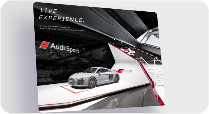 LIVE EXPERIENCE. Dynamics made tangible. Audi Sport at motor shows and events. 15 Audi Sport Brand Book Page 14 Page 16