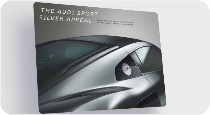Audi Sport Brand Book Page 11 Page 13THE AUDI SPORT SILVER APPEAL. Visualising the perfect combination of technology, precision and design. 12