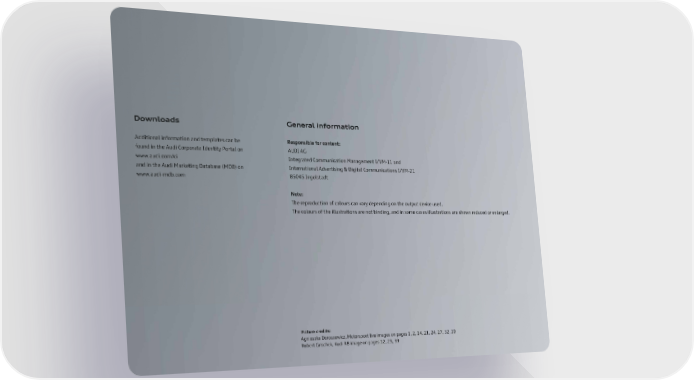 Downloads General information Additional information and templates can be Responsible for content: found in the Audi Corporate Identity Portal on AUDI AG www.audi.com/ci Integrated Communication Management I/VM-11 and and in the Audi Marketing Database (MDB) on International Advertising & Digital Communications I/VM-21 www.audi-mdb.com 85045 Ingolstadt Note: The reproduction of colours can vary depending on the output device used. The colours of the illustrations are not binding, and in some cases illustrations are shown reduced or enlarged. Picture credits: Agnieszka Doroszewicz, Motorsport live images on pages 1, 2, 14, 21, 24, 27, 32, 39 Robert Grischek, Audi R8 image on pages 12, 23, 39