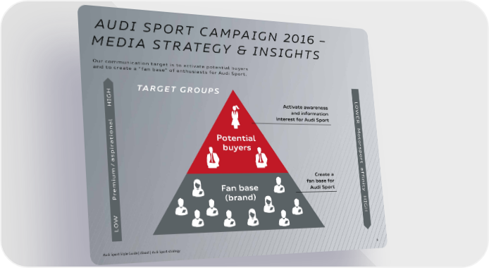 Audi Sport Brand Book Page 8 Page 10AUDI SPORT CAMPAIGN 2016 – MEDIA STRATEGY & INSIGHTS Our communication target is to activate potential buyers and to create a
