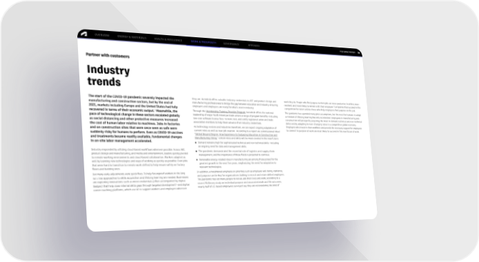FY22 IMPACT REPORT OVERVIEW ENERGY & MATERIALS HEALTH & RESILIENCE WORK & PROSPERITY GOVERNANCE APPENDIX 56 Partner with customers Industry trends The start of the COVID-19 pandemic severely impacted the they are. Autodesk offers valuable industry credentials to AEC and product design and work they do. People who find purpose in their jobs are more productive, healthier, more 5 manufacturing and construction sectors, but by the end of manufacturing professionals to bridge the gap between education and industry, ensuring resilient, and more likely to remain with their employer. Companies that succeed in the 2021, markets including Europe and the United States had fully employers and employees are ready for what’s next in industry. competition for talent will be those who help employees find purpose on the job. 3 Through the Membership Training Provider Program, Autodesk offers the national The pandemic has upended many prior assumptions, but the need for humans to adopt recovered in terms of their economic output. Meanwhile, the pace of technological change in these sectors escalated globally leadership of major North American trade unions a range of program benefits—including a mindset of lifelong learning has only accelerated. Employees in manufacturing and as social distancing and other protective measures increased low-cost software license fees—to train, test, and certify registered union and trade construction will prosper by acquiring the most in-demand technical and non-technical the cost of human labor relative to machines. Jobs in factories association members to help them advance their industry credentials. skills and by adapting to ever-changing roles in a competitive global economy. and on construction sites that were once seen as safe were As technology evolves and industries transform, we can expect ongoing adaptation of Employers who invest in their workforce and provide the necessary support for employees current roles as well as new job creation. According to a report we commissioned titled to connect to purpose at work are most likely to succeed in this new future of work. suddenly risky for humans to perform. Even as COVID-19 vaccines “Skilled Beyond Degree: How Experience Is Outpacing Education in Construction and and treatments became readily available, fundamental changes Manufacturing Hiring,” certain roles and skills will be most coveted in the near future: in on-site labor management accelerated. ● Demand remains high for sophisticated technical and non-technical skills—including an ongoing need for data and management skills. Industry responded by utilizing cloud-based workflows wherever possible. Across AEC, ● The pandemic demonstrated the essential role of logistics and supply chain product design and manufacturing, and media and entertainment, leaders quickly pivoted management, and the importance of these fields is projected to continue. to remote working environments and cloud-based collaboration. Workers adapted as ● Renewable energy-related roles in manufacturing are among those poised for the well by learning new technologies and ways of working as quickly as possible. Even jobs greatest growth in the next five years, emphasizing the need for adaptation to that were hard to transition to remote work shifted to help ensure safety on factory relevant technologies. floors and building sites. But many early adjustments were quick fixes. To help futureproof workers in the long In addition, a heightened emphasis on priorities such as employee well-being, resilience, run, new approaches to skills acquisition and lifelong learning are needed. Businesses and purpose can be key for organizations looking to recruit and retain skilled employees. are exploring innovations such as micro credentials (often accompanied by digital The pandemic has led many people to reevaluate their lives and work; according to a 4 recent McKinsey study on individual purpose and associated work and life outcomes, badges) that help close internal skills gaps through targeted development —and digital nearly half of US-based employees surveyed say they are reconsidering the kind of career coaching platforms, which use AI to support workers and employers wherever